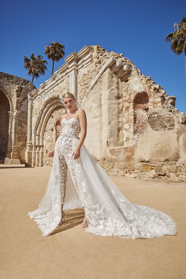Entdecke Eleganz in ihrer reinsten Form mit unserem exklusiven Brautkleid, das durch seine schlichte, figurbetonte Linie und hochwertige Materialien besticht.